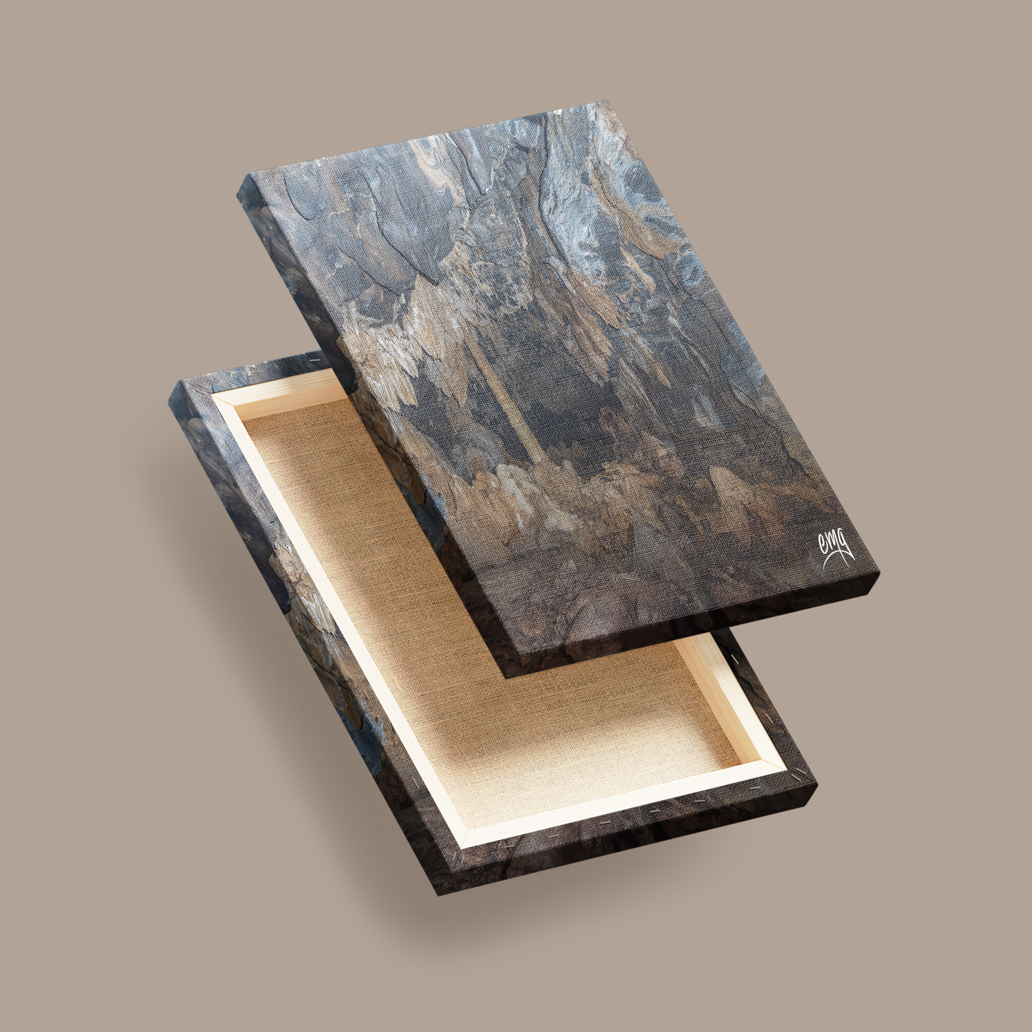 • El lienzo de polialgodón se ha estirado a mano y cuenta con un acabado mate.