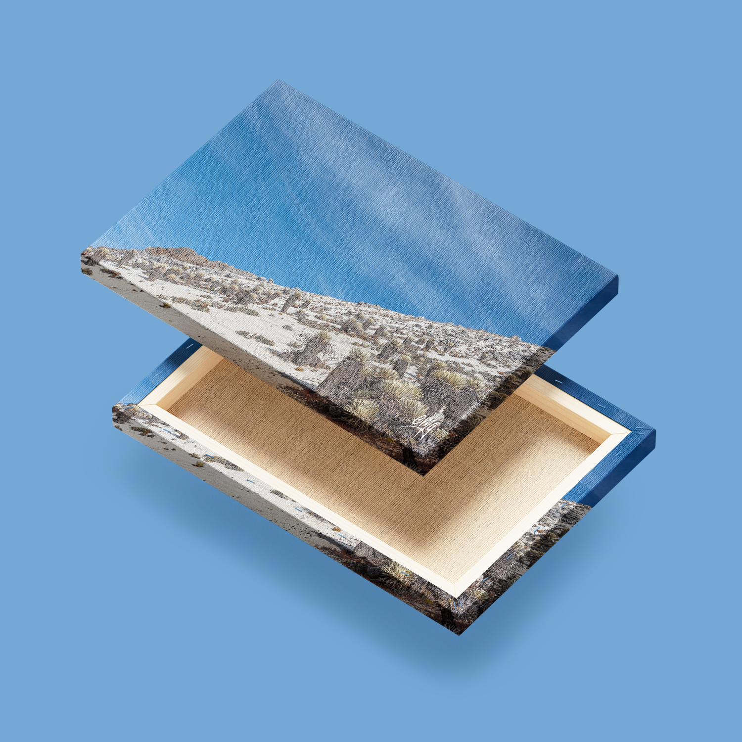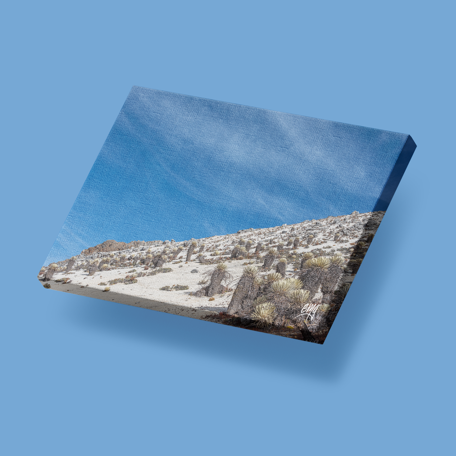 • El lienzo de polialgodón se ha estirado a mano y cuenta con un acabado mate.