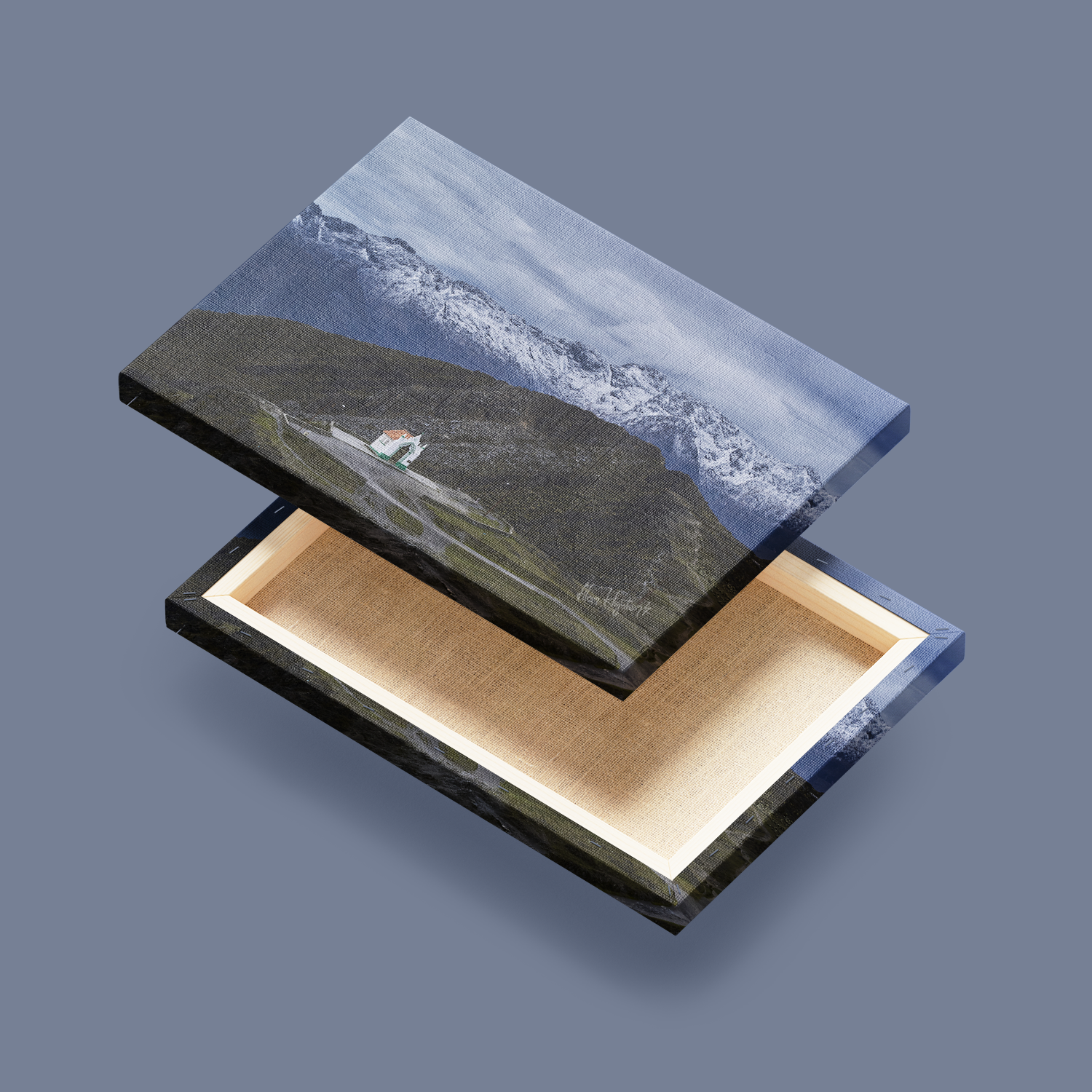 • El lienzo de polialgodón se ha estirado a mano y cuenta con un acabado mate.