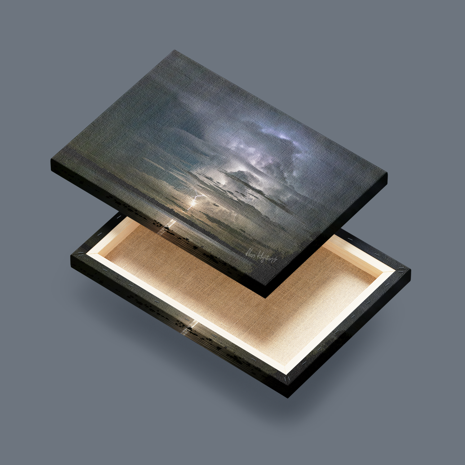 • El lienzo de polialgodón se ha estirado a mano y cuenta con un acabado mate.